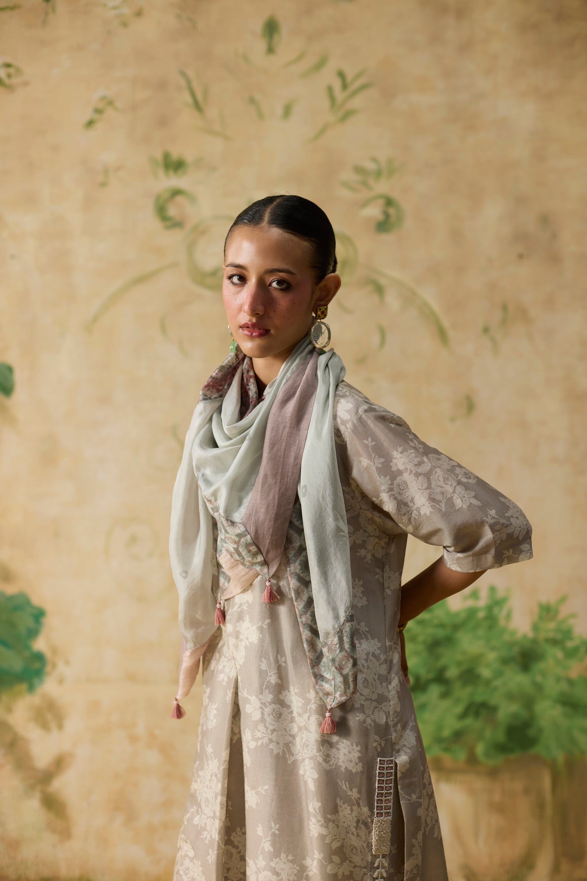 Fulard Kurta Set - Grey And Beige