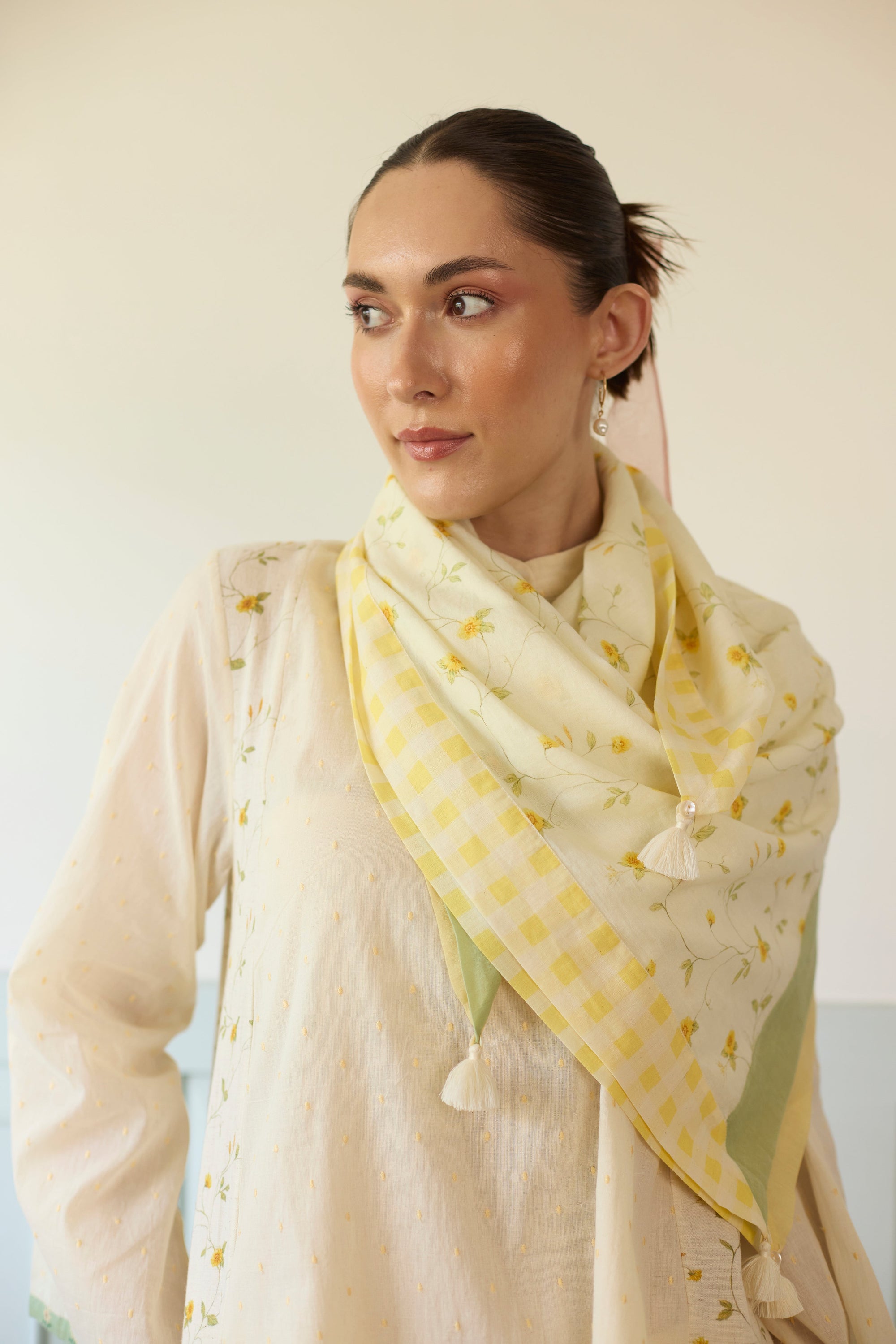 Kigiku Scarf - Off White And Yellow
