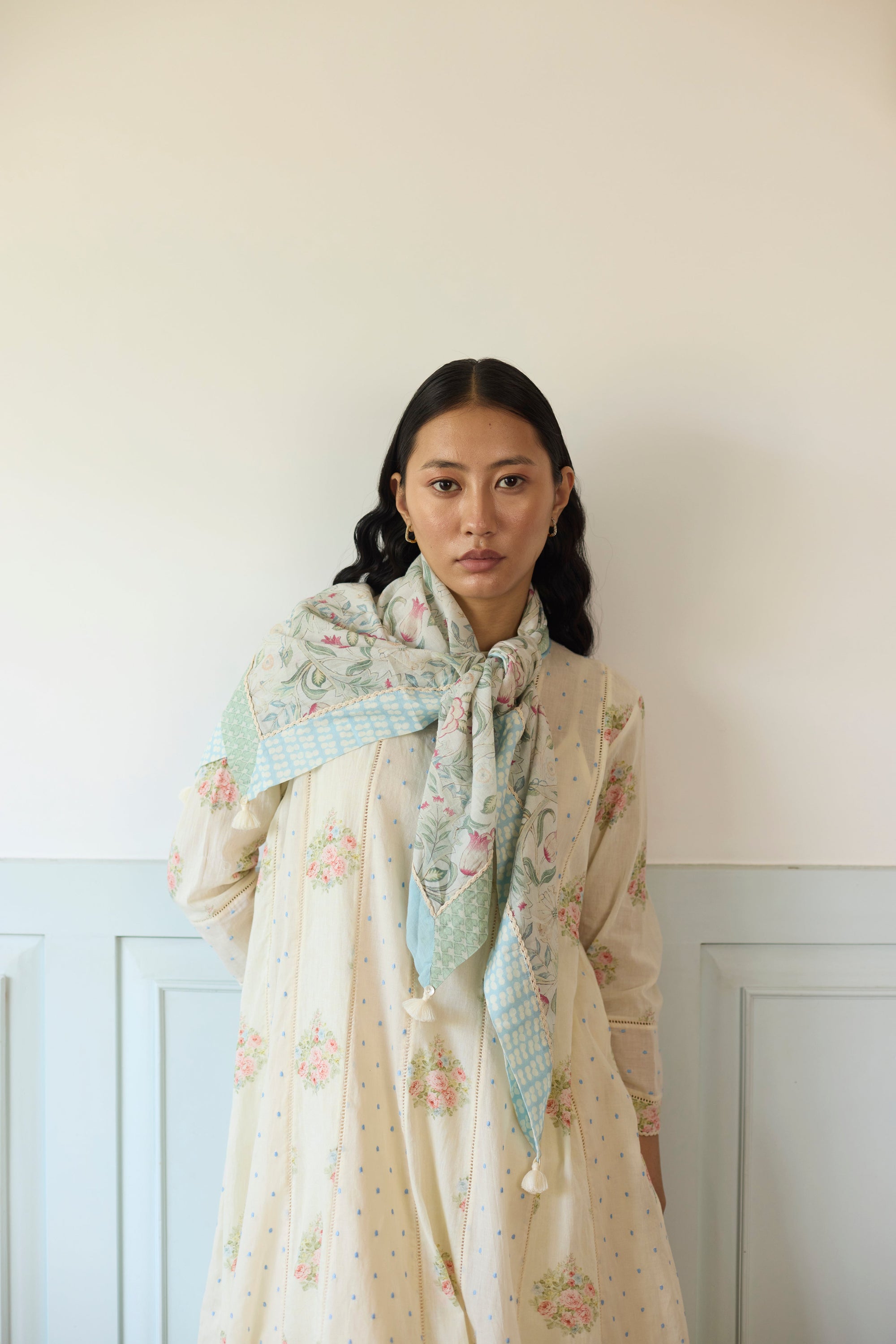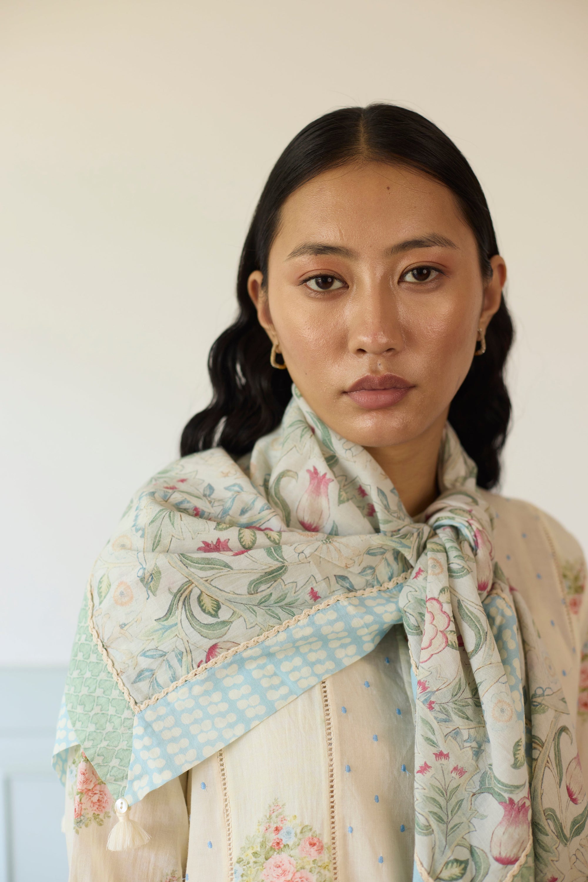 Kigiku Scarf - Off White And Green